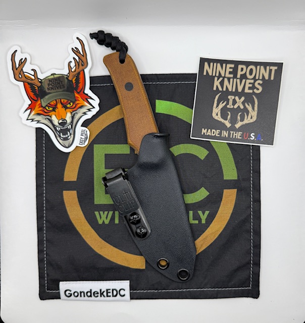 The Nine Point Knives × EDCwithSully Collaboration Fox is a USA, handmade, Nitro-V EDC built for versatility. With a 6.5-inch overall length and 3-inch drop-point blade, it delivers precision, comfort, and reliability. Its ergonomic handle provides a secure grip, making it a lightweight and stylish everyday carry companion.